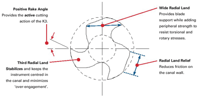 Fig. 2: Diagram of K3 file, cross-section. Radial Lands – The K3 design minimizes resistance while maximizing strength to reduce the possibility of fracture (Fig. 2).