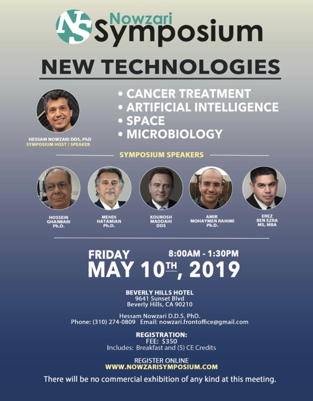 Nowzari Symposium on Friday, May 10th in Beverly Hills, CA. Dr. Nowzari will present more information about "How our microbes make us who we are".
