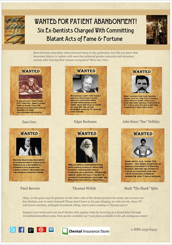 These six ex-dentists are wanted for patient abandonment and are charged with committing blatant acts of fame and fortune.