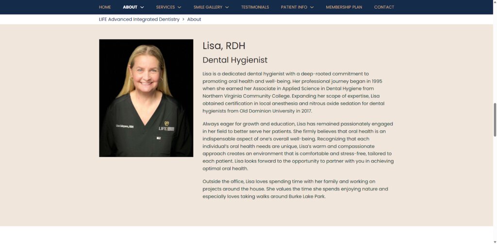 They're giving their hygiene team real estate on the website. Take for instance, Life Advanced Integrated Dentistry.