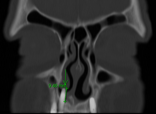 Odontogenic rhinosinusitis is defined as sinusitis induced by a dental lesion. The common etiologies include periapical and periodontal disease, odontogenic lesions and iatrogenic and traumatic causes. Iatrogenic causes include complications of tooth extractions, implants, sinus augmentation, osteotomies and other orthodontic surgery, and a foreign body reaction to either the root canal sealant or filling material used in root canal therapy. A significant amount of literature is dedicated to complications associated with dental implants and sinus lifts. The reported incidence of rhinosinusitis resulting from sinus augmentation is 0-27% (4). However, when strict criteria are used to define rhinosinusitis, the incidence is 4.5%. Approximately 1/3 of these patients will progress from acute to chronic rhinosinusitis. Chronic rhinosinusitis requiring surgical intervention from sinus augmentation is reported to be 1.3% of patients(4). Sinus inflammation consisting of mucous membrane thickening on preaugmentation CT imaging is a statistically significant risk factor for post procedure acute or chronic rhinosinusitis (5). These are patients who would benefit from a preaugmentation ENT evaluation.
