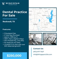 General Dental Practice Rockwall, Texas FOR SALE $250,000 -- General practice established 2 years, 3 ops fully equipped & with total of 5 plumbed...
