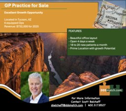 Practice for Sale – Tucson AZ Well-established general dental practice located in Tucson, Arizona, now available for sale. Practice has...