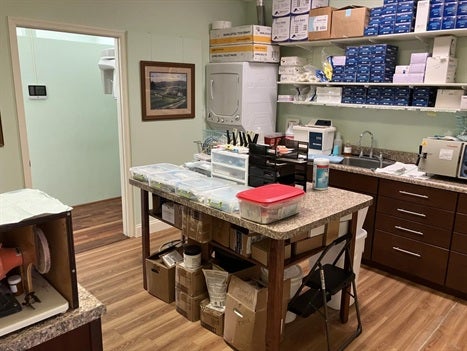 1,400+ sq ft office. Spacious office for its size. 4 plumbed ops (3 have dental chairs).