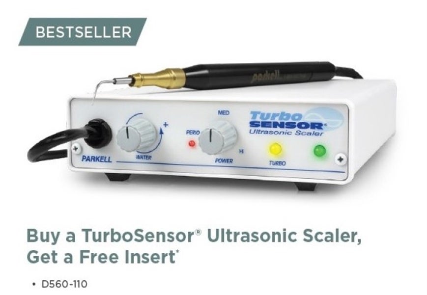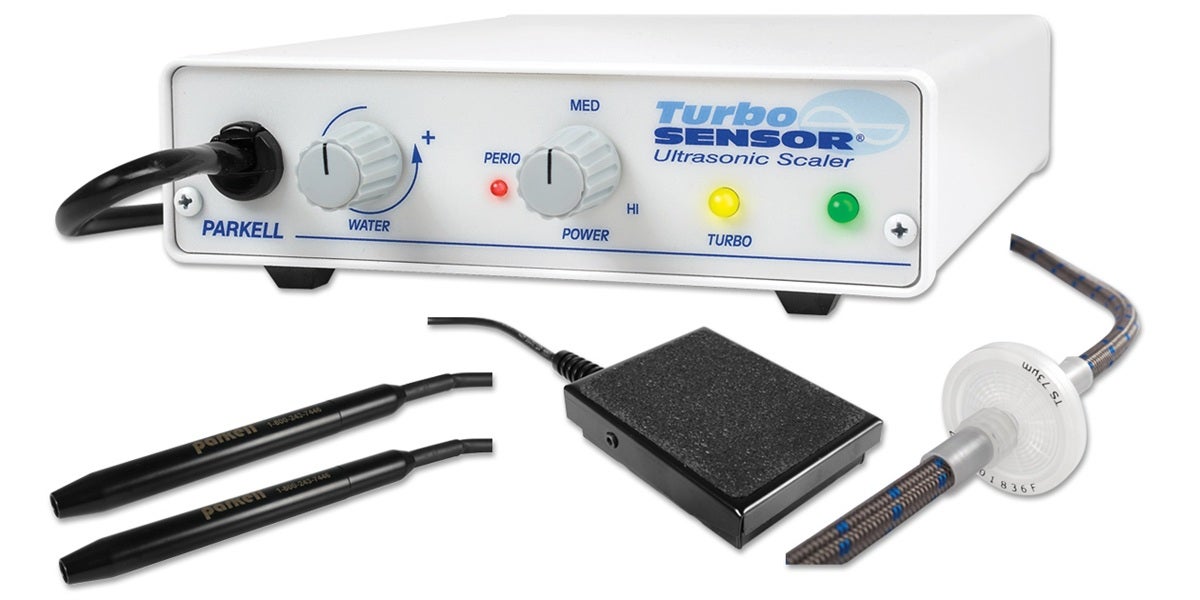Parkell’s popular TurboSENSOR™ Ultrasonic Scaler combines true versatility with intuitive operation. Its smart-circuitry senses whether you’ve inserted a 25KHz or 30KHz tip and automatically switches operating frequency to match the insert in the handpiece. For patient comfort during routine scaling, the TurboSENSOR offers an expanded low-power debridement mode. An orange LED on the control panel tells you when you are operating in this mode. At the other end of the control panel, the TurboSENSOR provides a higher maximum power setting for extreme calculus blasting. For removal of stubborn calculus, simply increase pressure on the included foot pedal and you’ll get an instant turbo power boost.