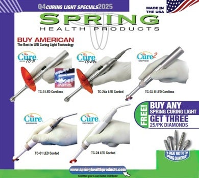 Buy Any Spring HealthCare Curing Light Get 3 free 25 Packs of Diamond Burs