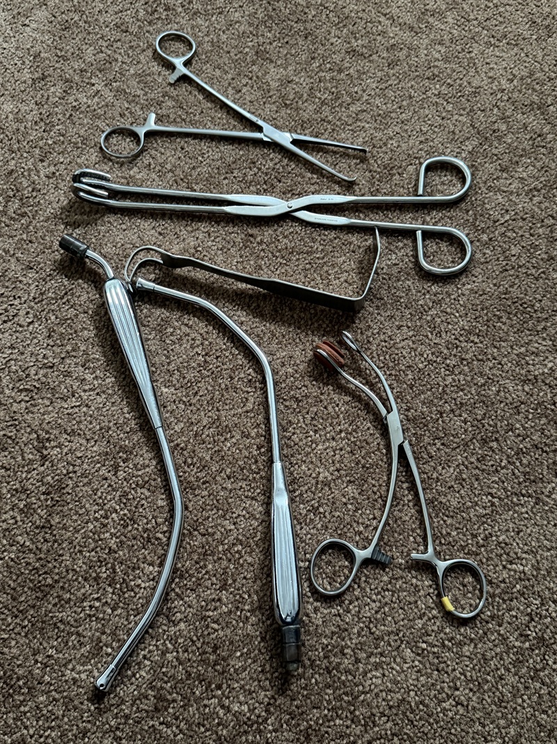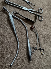 Multiple surgical aspirators, hemostats, sterilization tongs. Retractor. Shipping will be paid by buyer. The Duncanson suction tip works amazingly to help retrieve root tips and suction surgical sites. Just that alone in time savings and reduced stress. All instruments are able to be autoclaved.  Great value for all.