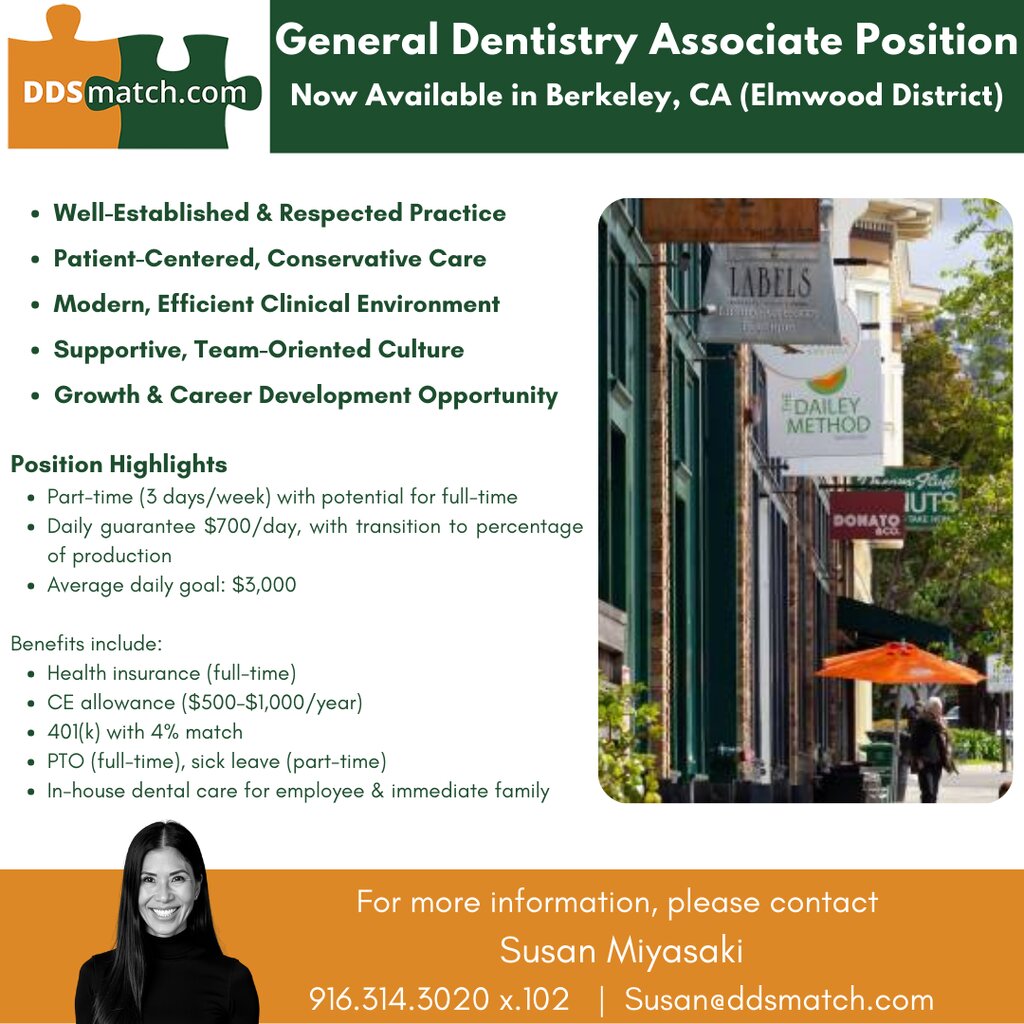 General Dentistry Associate Position Now Available in Berkeley, CA (Elmwood District)