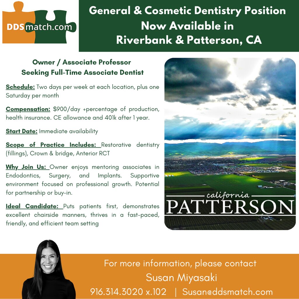 General & Cosmetic Dentistry Position Now Available in Riverbank & Patterson, CA