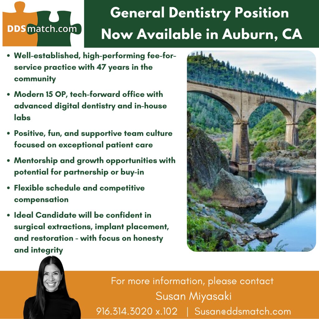 🦷 Now Hiring:  Associate Dentist in Auburn, CA.