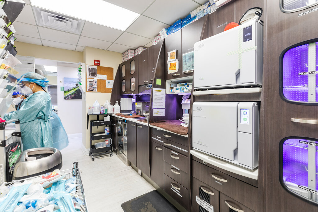Brand new Midmark M11 autoclave and full set of Pelton and Crane dental cabinetry throughout the entire office including the Solaris sterilization cabinet system with integrated Hydrim L110 instrument washing machine.