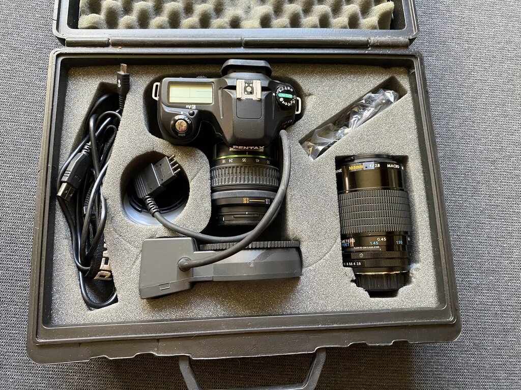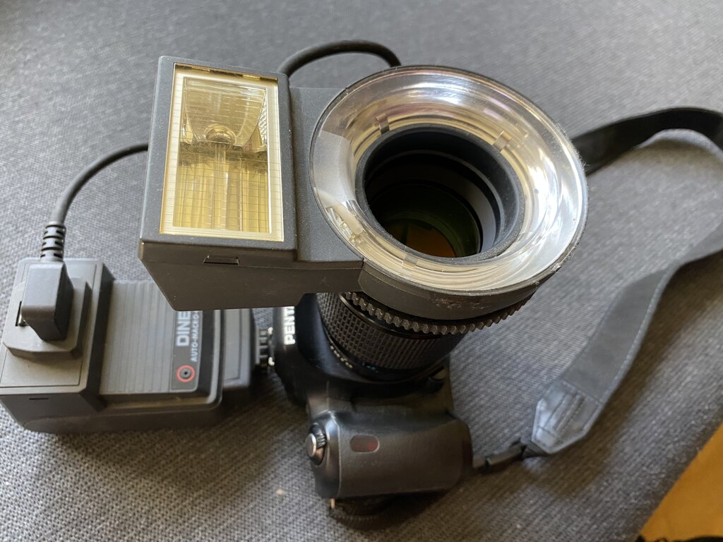Digital Pentax istD camera with Lester Dine Auto Macro Light and Lester A. Dine 105mm Macro dental lens with ring flash ,also another Petax18-55 lens included.