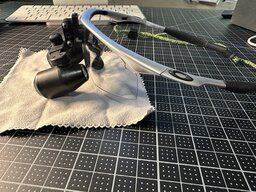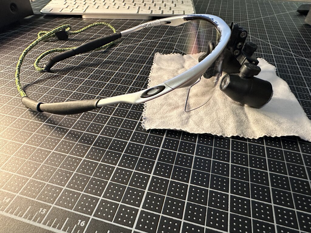 • Cosmetic note only: Minor silver flaking / discoloration on the interior surfaces of the Oakley frame. This is purely aesthetic and not visible to patients – it is only noticeable on the inside when inspecting the frames closely. The exterior and patient-facing view remain clean and professional. It has zero impact on fit, comfort, optics, ergonomics, or clinical use.