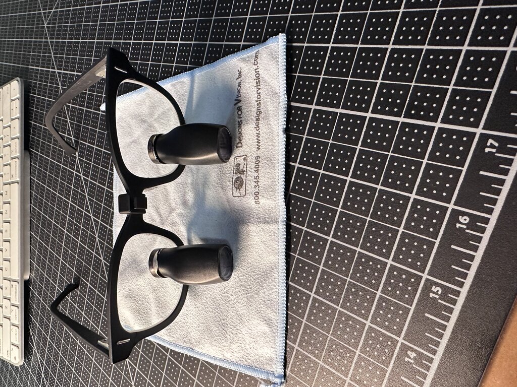 Important note: As custom-manufactured loupes, they were fitted to the original owner's measurements (IPD, working distance, declination, etc.). A new user will need to send them to Designs for Vision for factory refit/rebuild to match their personal specs (typical cost confirmed by company – contact DVI directly for current exact quote and process). This makes them essentially "brand-new after rebuild" for the buyer at a significant savings compared to ordering new custom loupes (~$2,000+ retail).