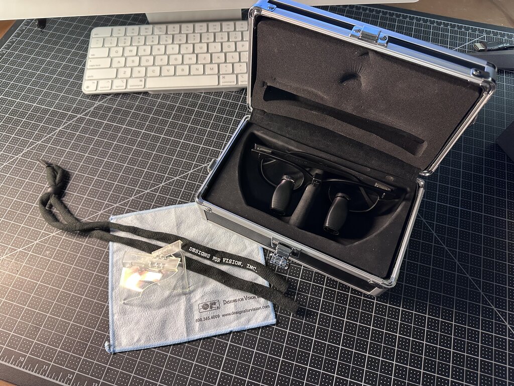 Brand-new, never-used Designs for Vision Micro EF 4.5x loupes (Expanded Field / wide range model) – still in the original aluminum protective case with custom foam inserts, microfiber cloth,. These have never been worn or adjusted – optics are flawless, no scratches, haze, wear, defects, or signs of use anywhere.