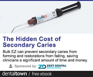 Products like Bulk EZ from Zest Dental Solutions address the limitations of standard direct composites, saving you both time and money. Bulk EZ is an easy-to-place dual cure composite that features technology designed to control and direct shrinkage as well as eliminate leakage in posterior restorations, reducing the likelihood of secondary caries developing and restorations failing.