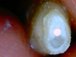 The final obturation step is accomplished with the cordless HotShot backfill gun. The gun heats up within 20 seconds, and has variable heat settings for gutta percha or Resilon pellets. Once contact has been made, the trigger is expressed and warm obturation material is extruded into the remainder of the canal.