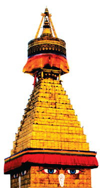 Boudha stupa as we circled to land in Kathmandu, Nepal. This