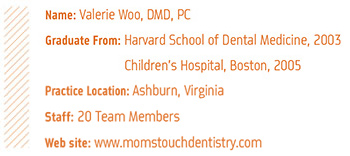 Woo: Our philosophy is simple – create a lifetime of good oral health. My practice began as NOVA Pediatric Dentistry, offering full-service dental care to children of all ages, including special and advanced skill in treating children with different physical and emotional needs. We care for children from the time before the first tooth erupts through their teen years and beyond. From nursery room to dorm room, we treat children through all the phases of dental development – preventive, restorative, sedation options and orthodontics – and always remember to treat them as if they were our own kids.