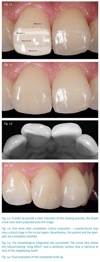 the shade to that of the surrounding natural dentition (Fig. 12). On