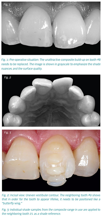 From the incisal aspect the vestibular contour looks distinctly opalescent material Trans Opal was applied to the sides of the