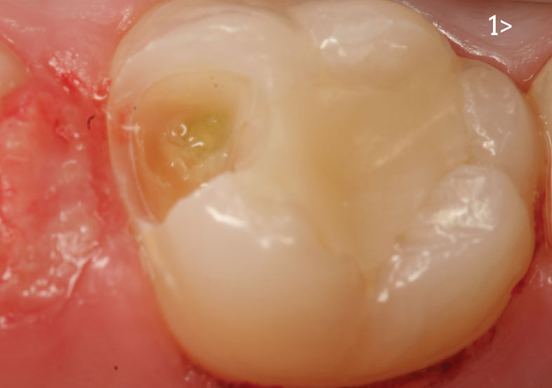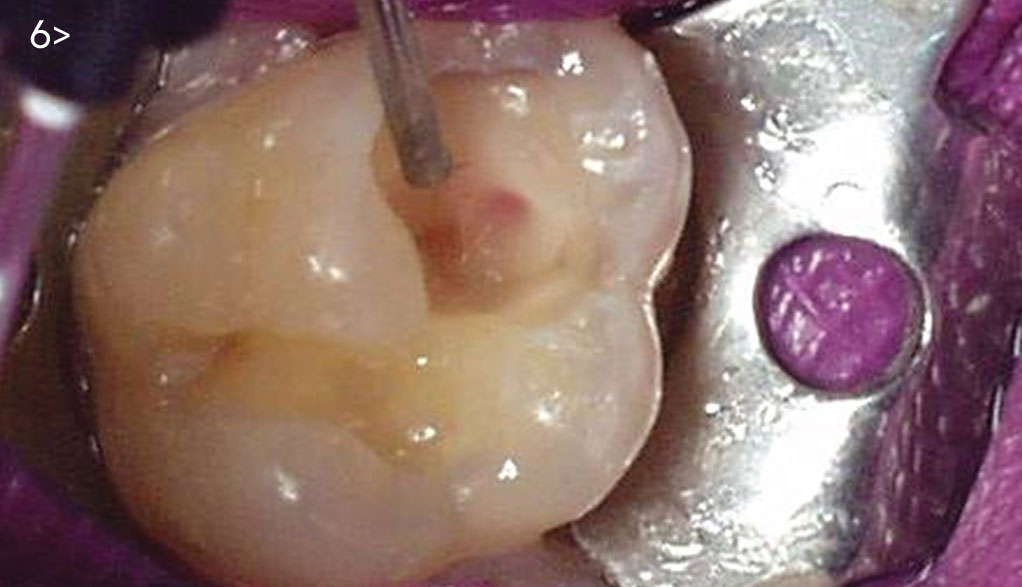 occlusal decay. After anesthetic and rubber dam isolation, the tooth