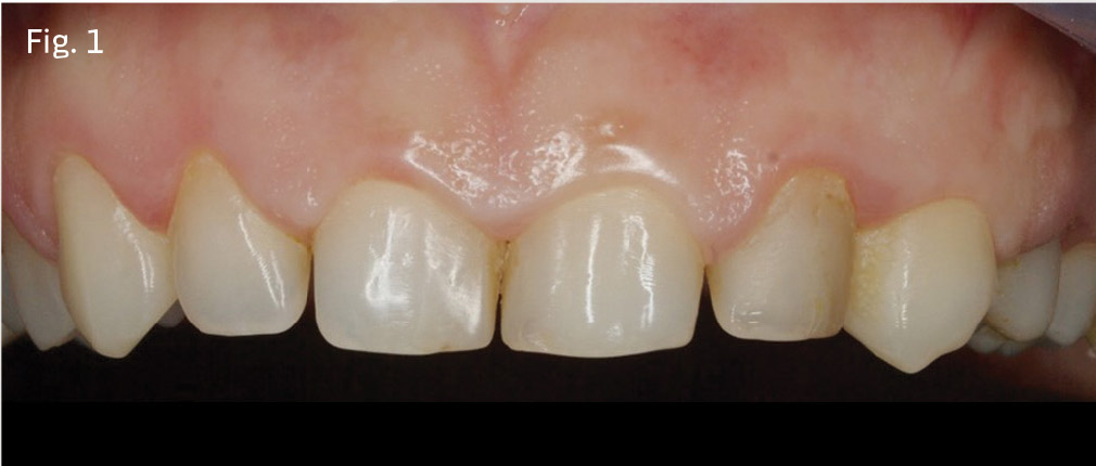 The patient presented with signs of both a gummy smile and poor dental morphology (Fig 1).