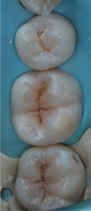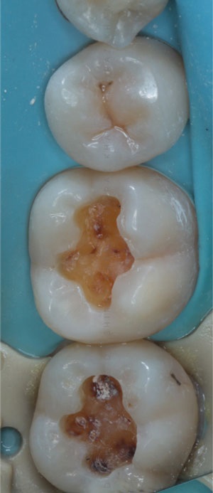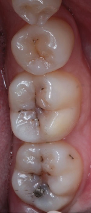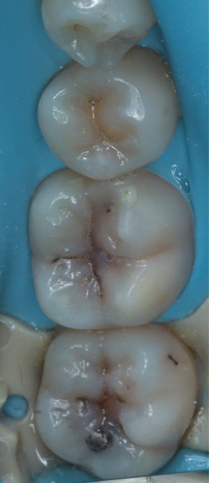 A 28-year-old patient attended the dental surgery for the first time in around 10 years. After using systematic desensitisation to help her overcome her fear, the patient began her restorative work. The patient had a tooth that had been previously restored with amalgam adjacent to another tooth which had never been restored. Whether or not a tooth has previously been restored does not indicate whether a tooth is suitable for a composite resin restoration. Both had clinical and radiographic caries and the probe was catching in the patient’s central fissure (Fig. 1).