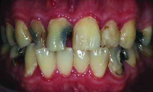 For this 31-year-old patient, an inability to afford or prioritize the care and treatment of his visibly damaged and decayed teeth—combined with a longtime fear of going to the dentist—led to a mouthful of severely deteriorated dentition and a history of chronic periodontal inflammation, multiple recurrent decay and incomplete treatments.