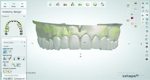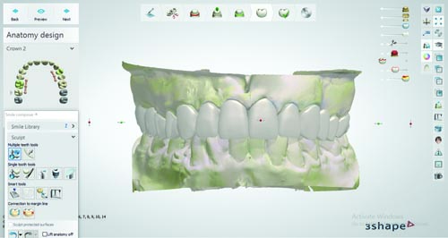 Fig. 22: View of the more refined proposal for the provisional restorations prior to milling.