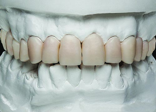 Fig. 11: Preoperative models were mounted, studied and used to determine ratios that should be incorporated into the restoration designs.