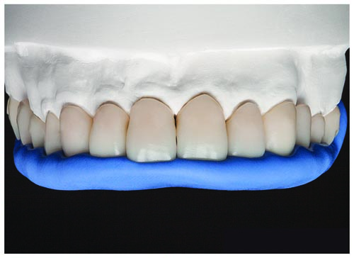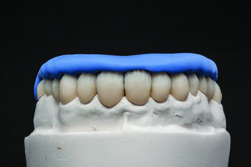 Fig. 25: A putty matrix was made to help guide an incisal edge cutback.