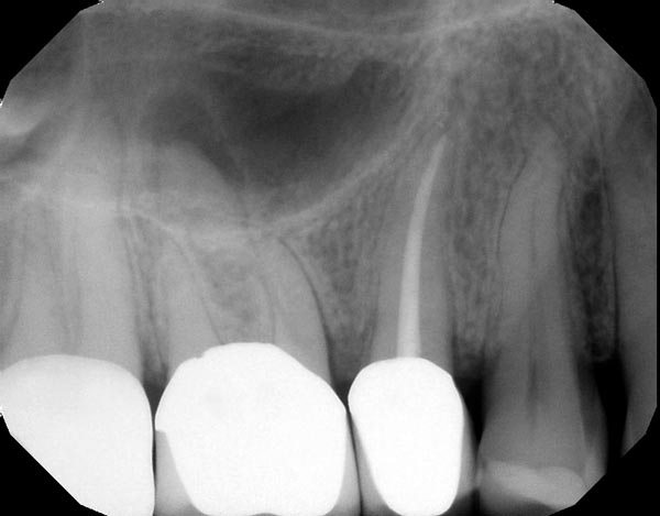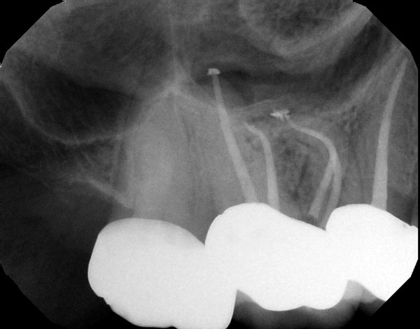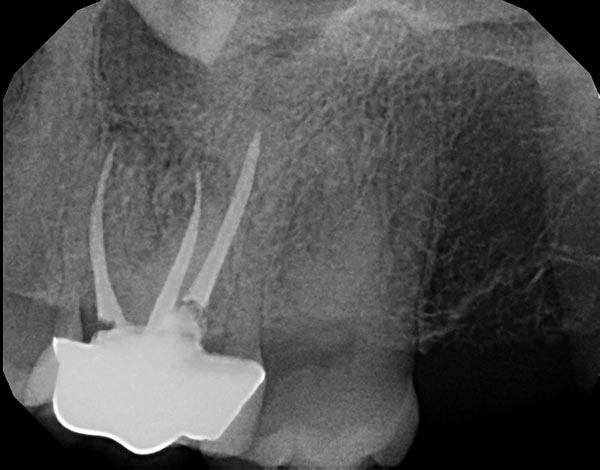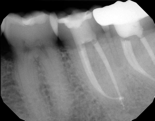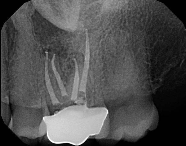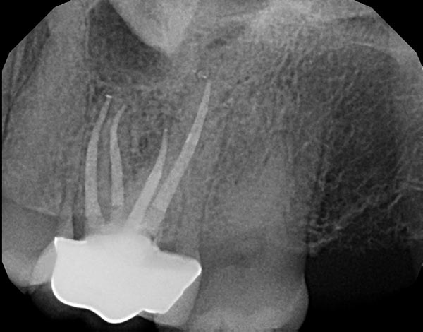 Fig. 5a: Preoperative image of tooth #18 with an irreversible pulpitis and a suspected fracture. The standard anatomy in this tooth could likely be instrumented with a variety of different file systems.