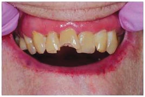 Fig. 1: Fractured maxillary incisor of a 94-year-old female patient.