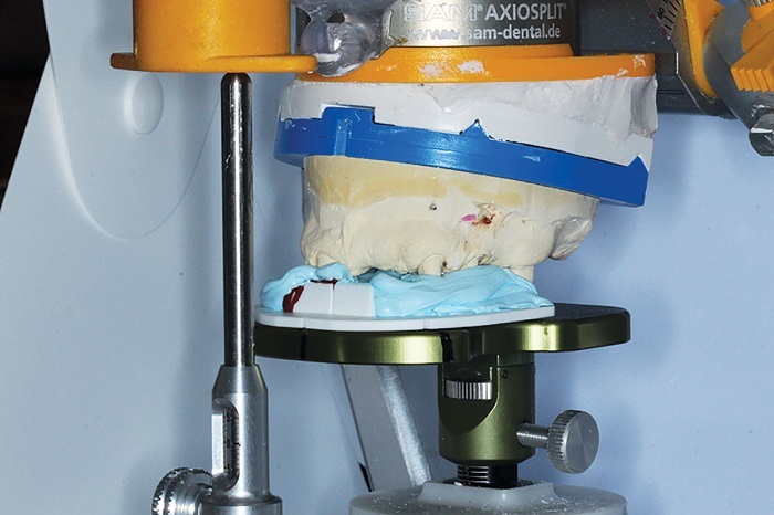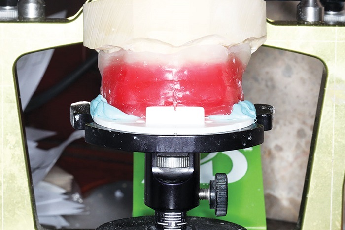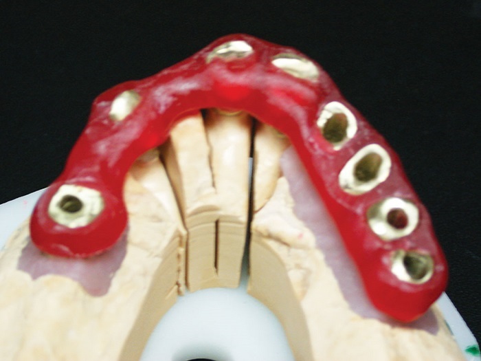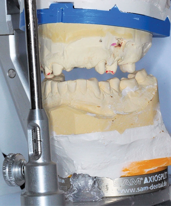 My preferred starting point for this is a facebow or Kois Analyzer registration and bite blocks or CR bite (Figs. 5–7). With implant cases, a verification jig is a must (Figs. 8 and 9).