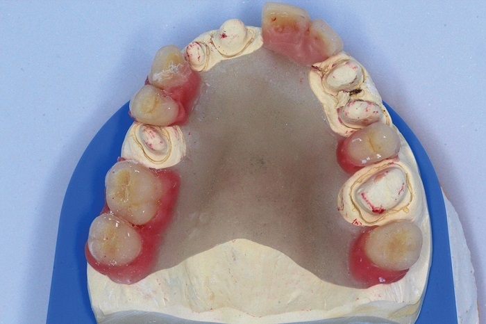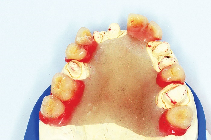 Another material for secondary telescope copings is USIG PEEK, a vacuum-formed material that is drawn over the primary telescope directly. They are then placed on the model and duplicated for the secondary frame creation (Figs. 48–50).