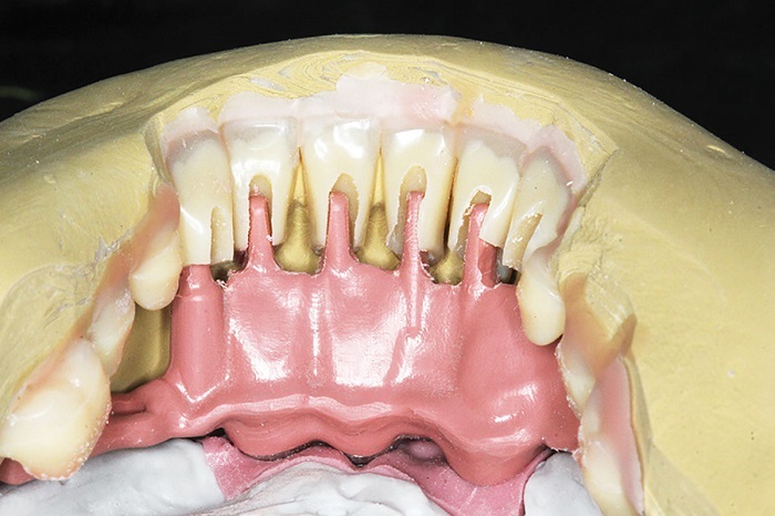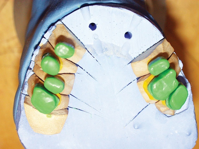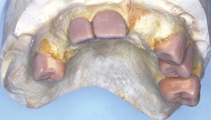 One criteria to bear in mind is that unless it is single telescopes in addition to other retentive elements, in essence a telescope case is a denture in function—it is removable, even though the primary copings are fixed restorations or screw-retained implant abutments. Standard procedure for any of these is a diagnostic wax-up and/or denture setup. We need to determine incisal edge positions, contours and occlusion.