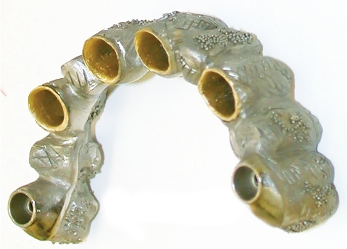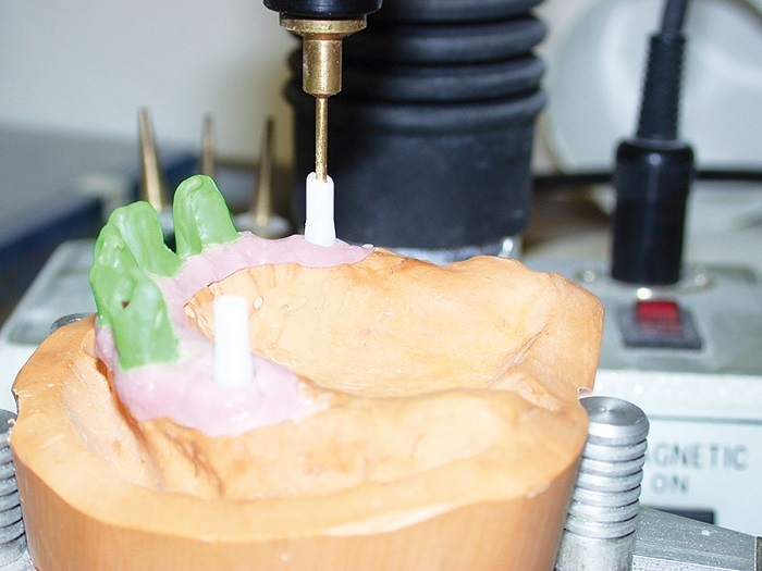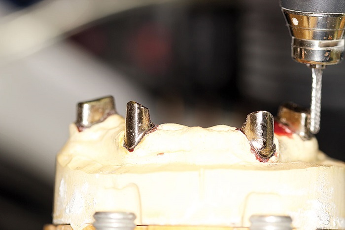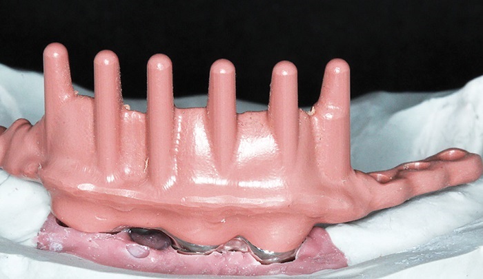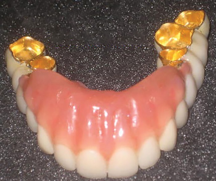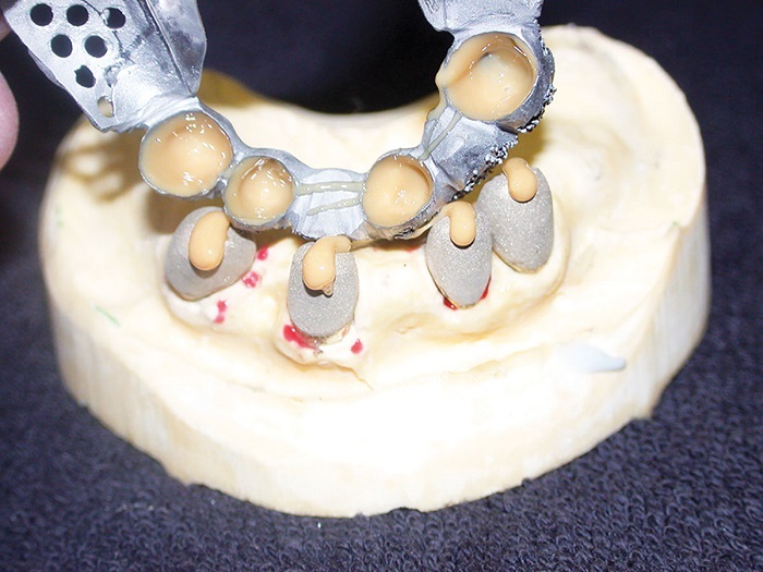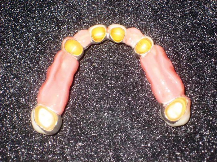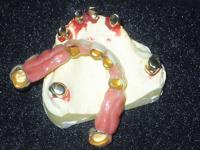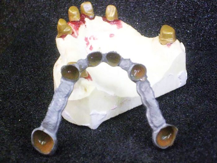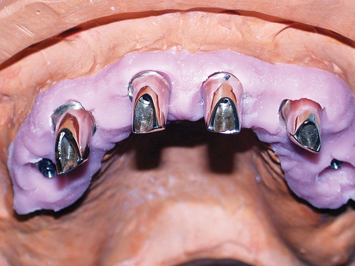 I believe the best combination for longevity in the friction fit is the fabrication of the primary copings in CAD/CAM-milled medical-grade nonprecious and the secondary in PEEK. However, the traditional analog cast and coping technique (Figs. 2–4) still comes in very handy on many occasions.