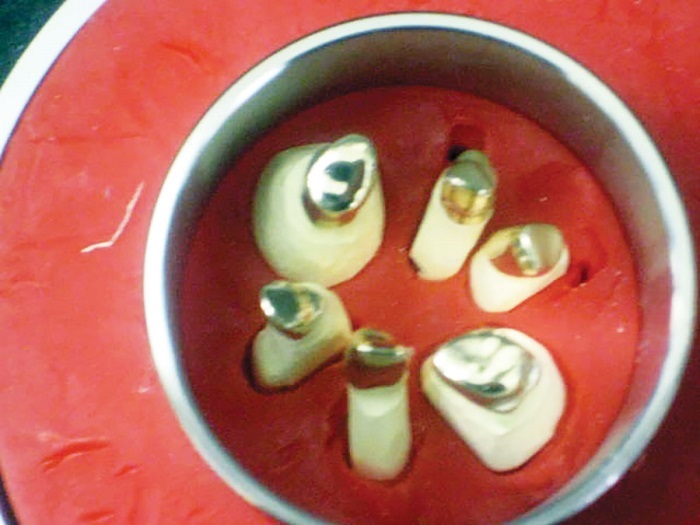 When telescopes first were created, it was a fully analog procedure, using cast gold primary copings that had been milled parallel in wax, cast, remilled after try-in and pickup, then highly polished. Only then was the secondary crown/coping waxed and cast.