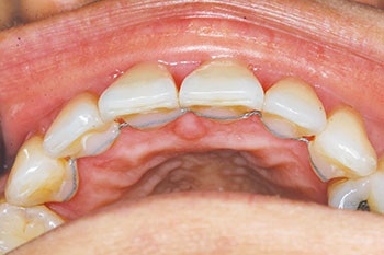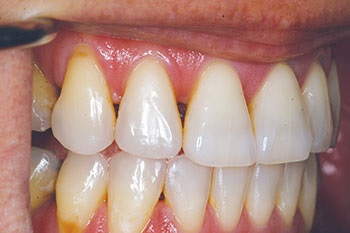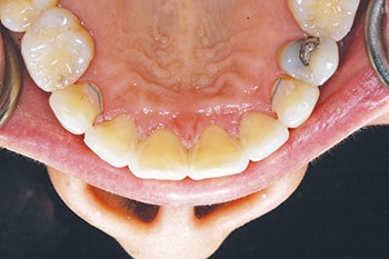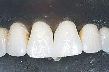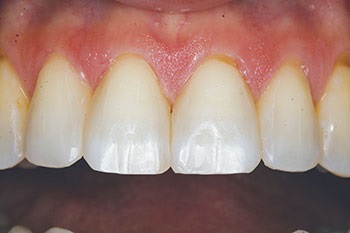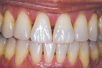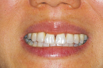 Recently, a 49-year-old female patient was referred to my office by an orthodontist after she had completed Invisalign treatment. The patient had very triangularly shaped incisors and was left with black triangles, which she found unsightly. She sought treatment at the offices of two different restorative dentists, both of whom told her it was not possible to treat the problem with “bonding,” and they both offered only porcelain laminate veneers as a solution. The patient did not want to undertake such invasive treatment of her virgin teeth and asked her orthodontist for a referral. That’s where I became involved.