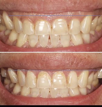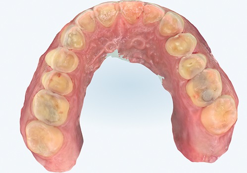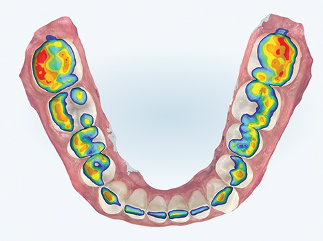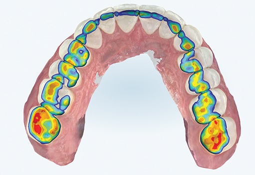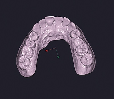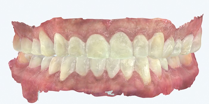 An iTero scanner was used to scan the patient while using the deprogrammer to find the centric relation bite. We had the patient bite on the deprogrammer and then scanned the patient’s bite.