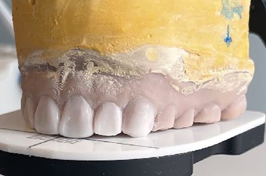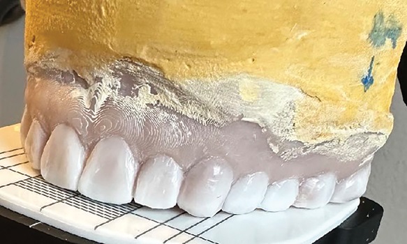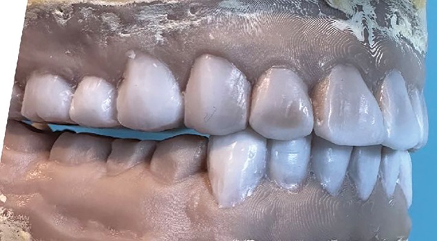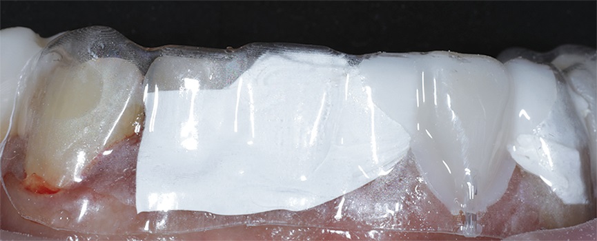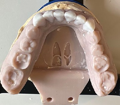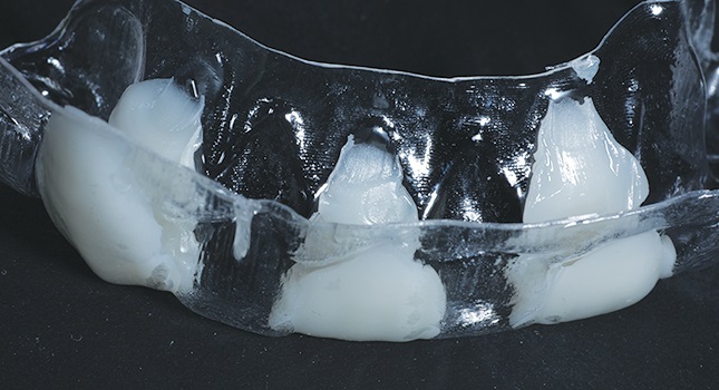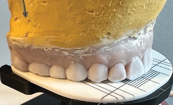 With this treatment plan in mind, we decided upon the execution of the case. This could be done using a stent or injection molding with a nanocomposite. The rationale for going with the stent was that the patient bruxes, and using a nanocomposite showed significantly less wear at bearing cusps versus any other type of composites.1