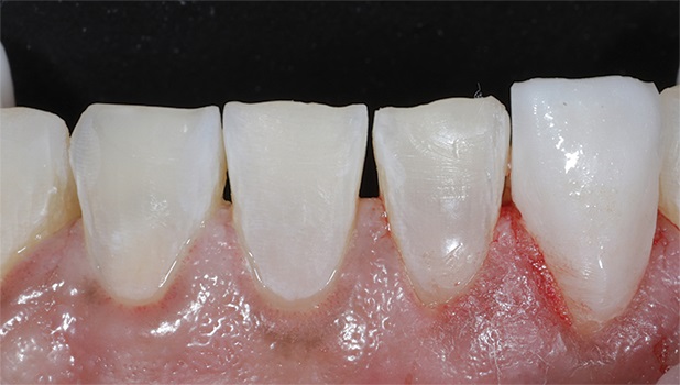 Periodontal health: Recession was present on the following teeth: #5, #14, #21, #22, #28 and #29, but the classification would be Stage 1. Probing depths were 3 mm or less with less than 2 mm of horizontal bone loss.