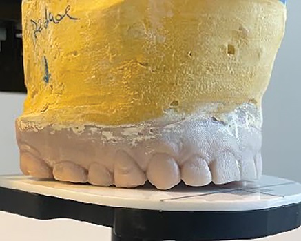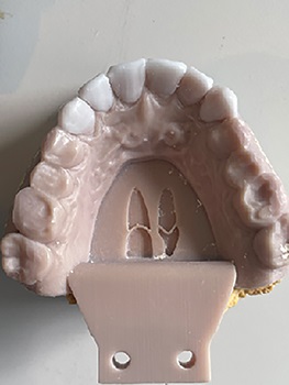 Facial integration: An iTero scanner was used to scan patient’s existing bite, and Exocad was used to design a Kois deprogrammer. I used a SprintRay Pro 55S printer with NightGuard Firm resin. Patient’s models were also printed using SprintRay resin Dental Model Tan.