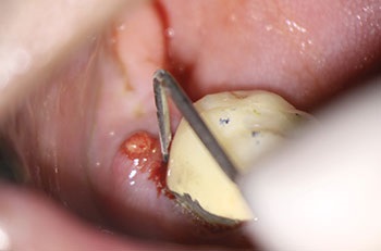 A patient solicited a second opinion after her dentist recommended extraction of #18 because of a suspected VRF, apparently suggested by a midbuccal probing defect.