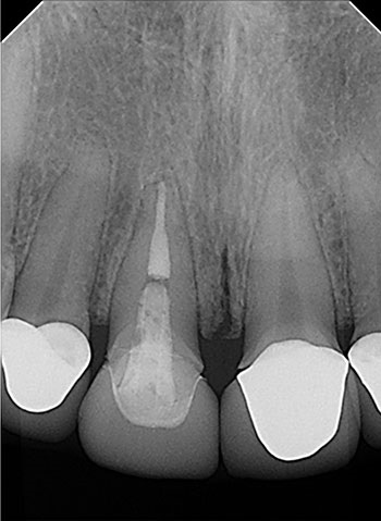 The patient’s symptoms resolved after the first visit. The case was obturated after confirming full bony healing. She is still extremely appreciative of the efforts made to save her front tooth.