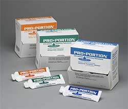 - PRO-PORTION® General Purpose Cleaning Solution quickly removes blood, tissue, oxides, plaster, pumice, soil, rouges, and buffing compounds from dental instruments and appliances. Mix one packet per gallon (3.8l) of water. REF 21360 20 packets per box, 12 boxes per case