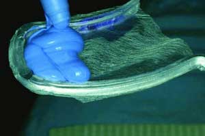 q Mesh attached to all sides of tray, narrowing material to form a secure "lock" to tray walls.