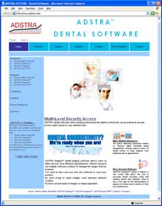 The new ADSTRA Systems website provides extensive information on each of the company’s software products, including Practice Made Perfect® Practice Management Software, ADSTRA Charting™ Treatment Planning and Charting Software, ADSTRA Imaging™ Image Management Software, and ADSTRA popCOM™ Inter-office Communication Software. There are also sections for press releases and company background. The updated website includes information on product support and training, including the availability of remote training sessions, in which customers are directly connected to one of the company’s Training Specialists via the Internet or pcAnywhere™. This enables the trainer to see exactly what the customer sees on the computer screen and to guide the customer through the programs step by step.