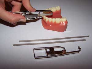 The Enamel stripping kit consists of a universal stripper instrument made from sterilizable stainless steel that can be manually operated for better and safer control; accepting all sizes of steel abrasive strips and many linen, cloth, or plastic abrasive strips that can be sterilized, and used repeatedly.  The kit has strips of three different width sizes that can be used for several applications that will prevent gingival tissue injury; the incisal guide prevents tissue laceration. Single and double-sided strips can be used with the instrument.